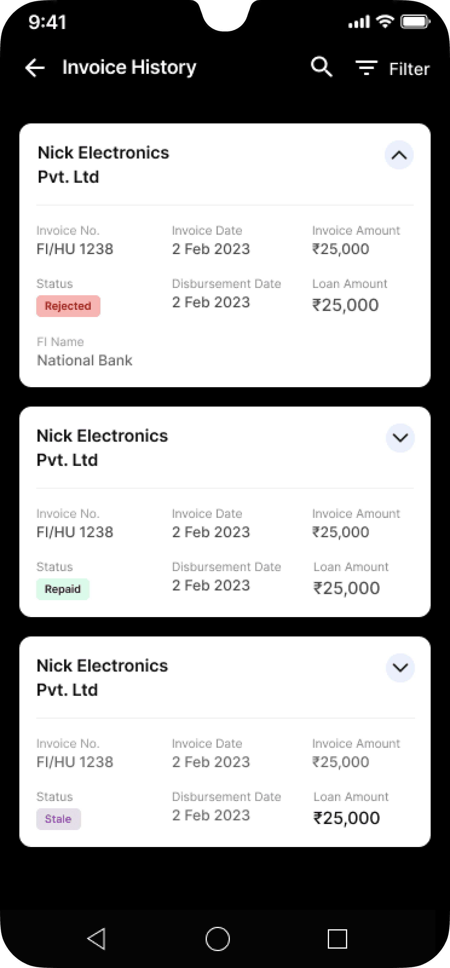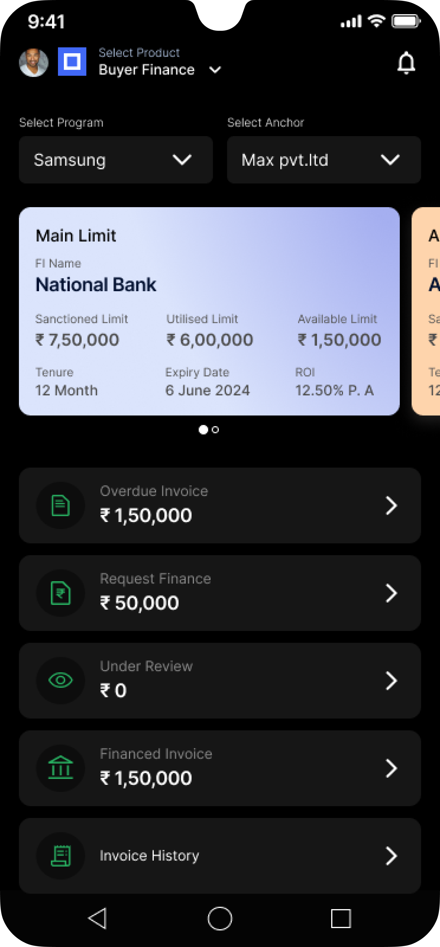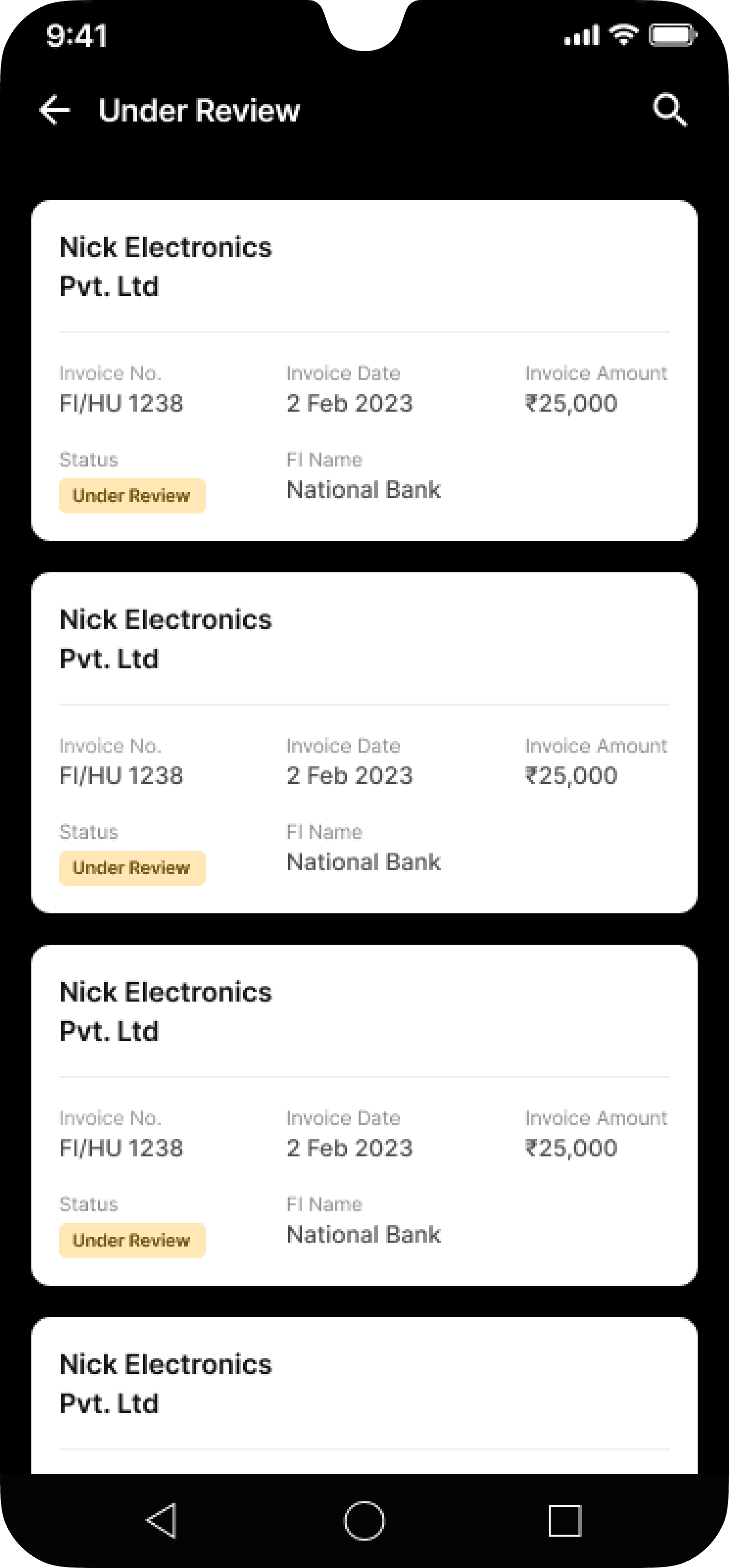 Provide real-time tracking of invoice status (under review, financed, rejected, overdue) to reduce confusion and follow-ups.