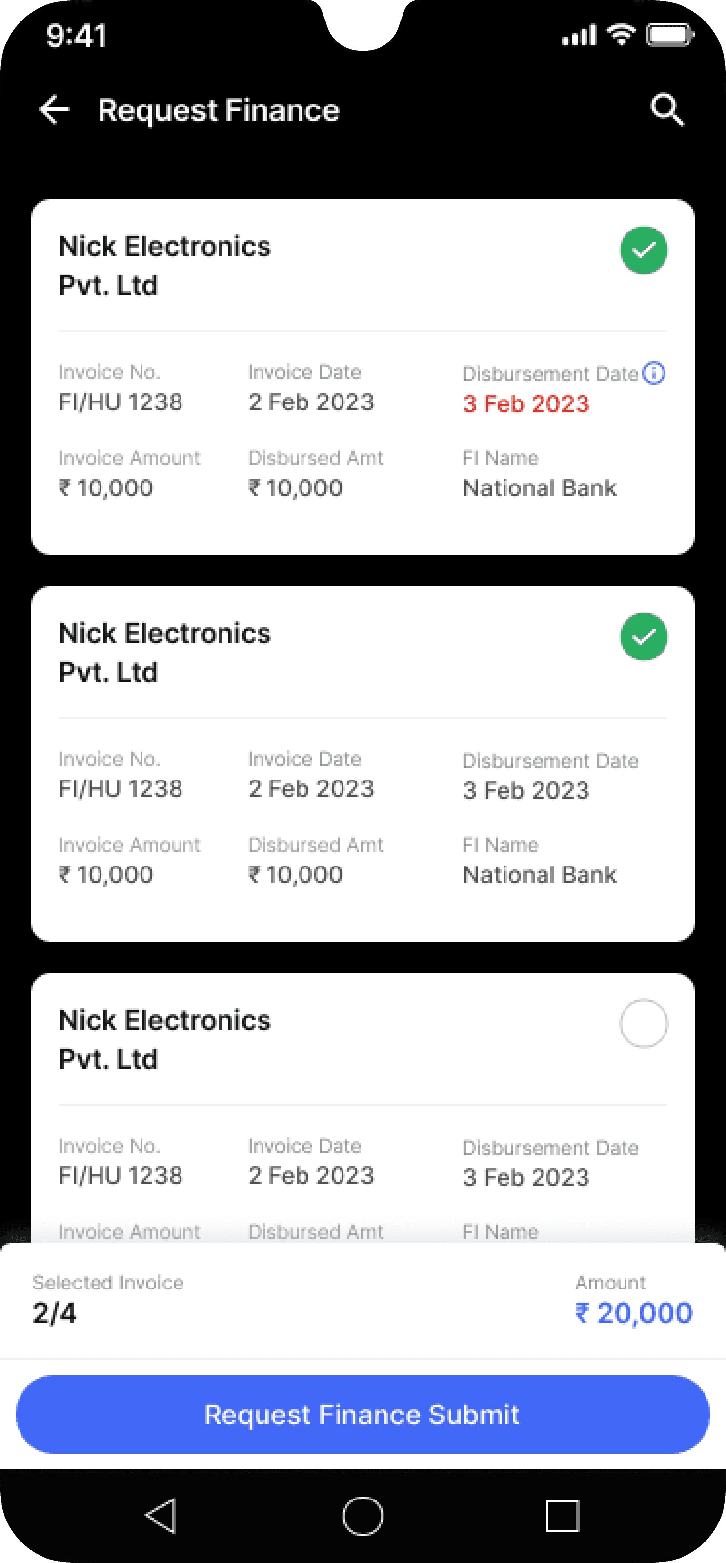 Dealers and distributors still use emails, calls, or spreadsheets to request invoice financing.