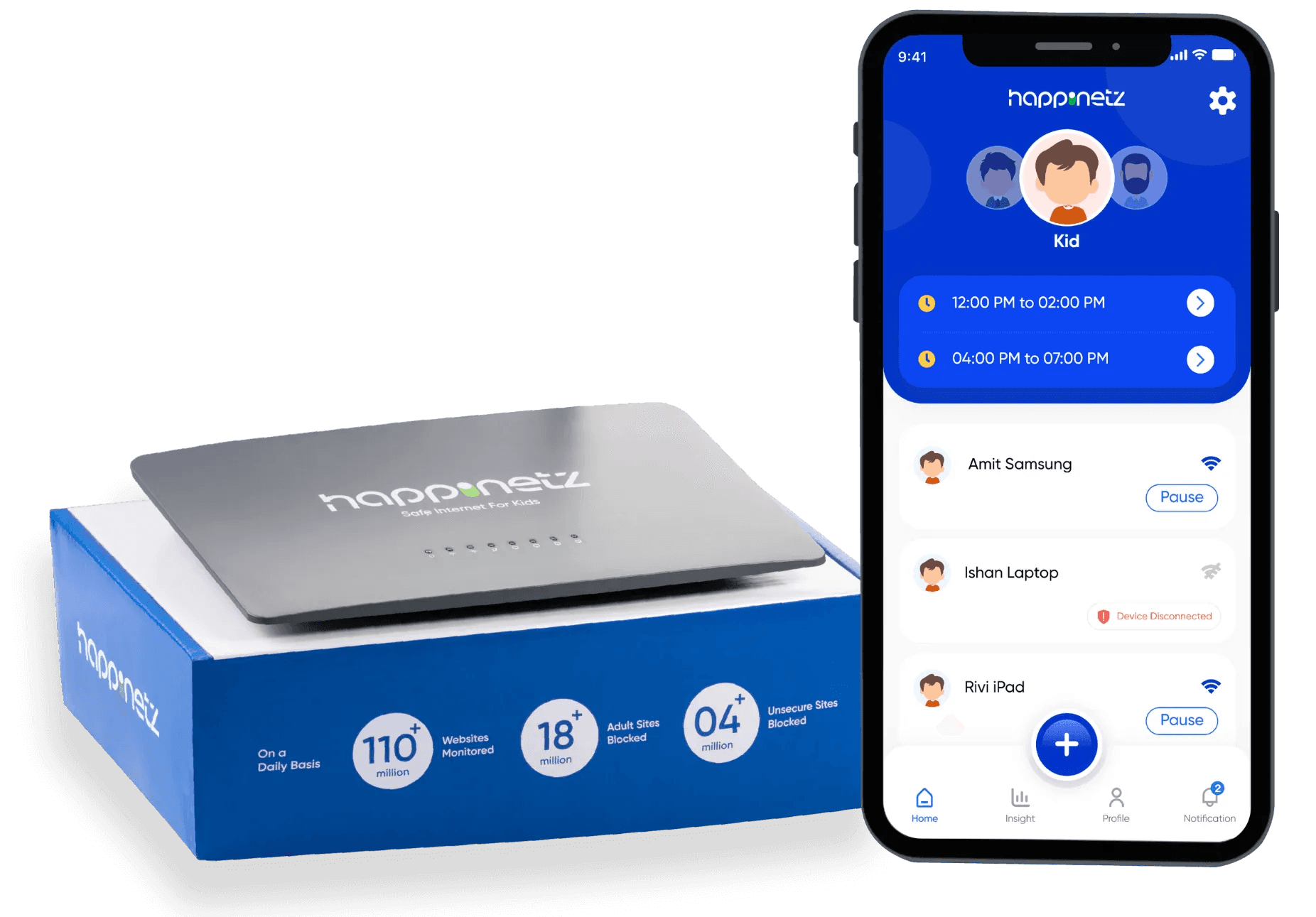 Happinetz helps parents keep their children safe online by blocking harmful content and controlling screen time.