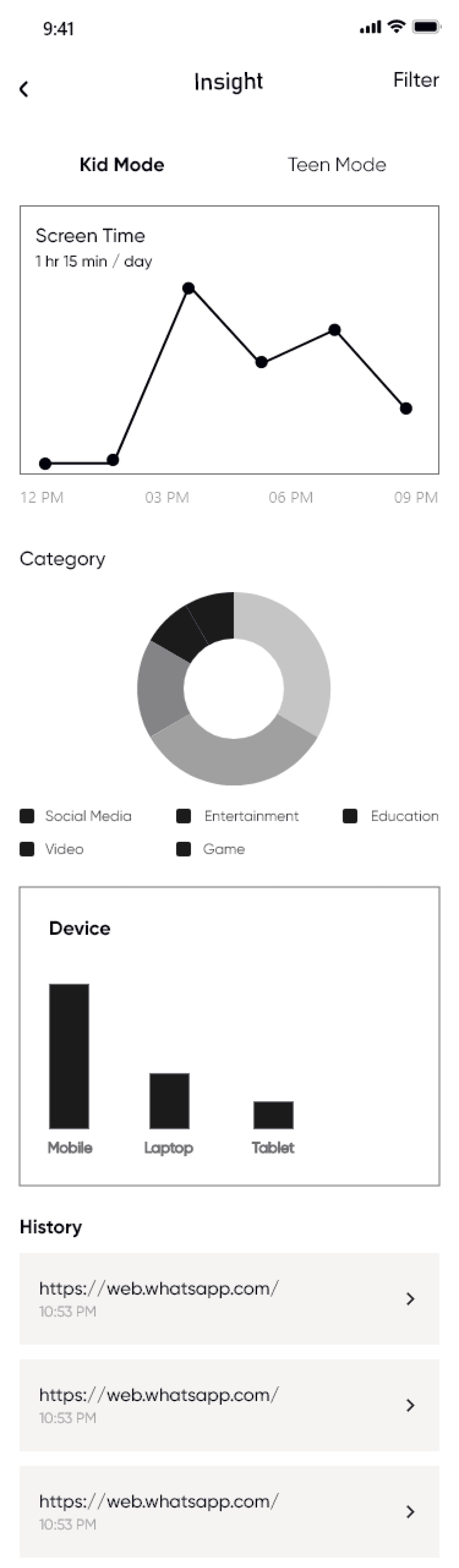 I found that many parents worry about screen time, online safety, and not having clear visibility into their child’s digital behavior. This showed a need for a simple and effective parental control solution that is easy to use and builds trust.