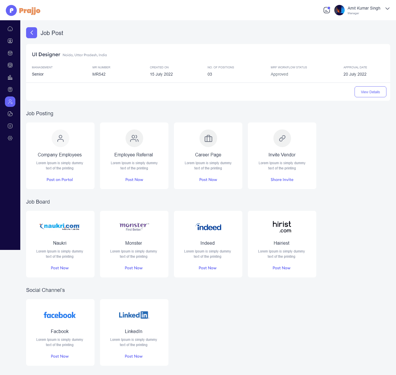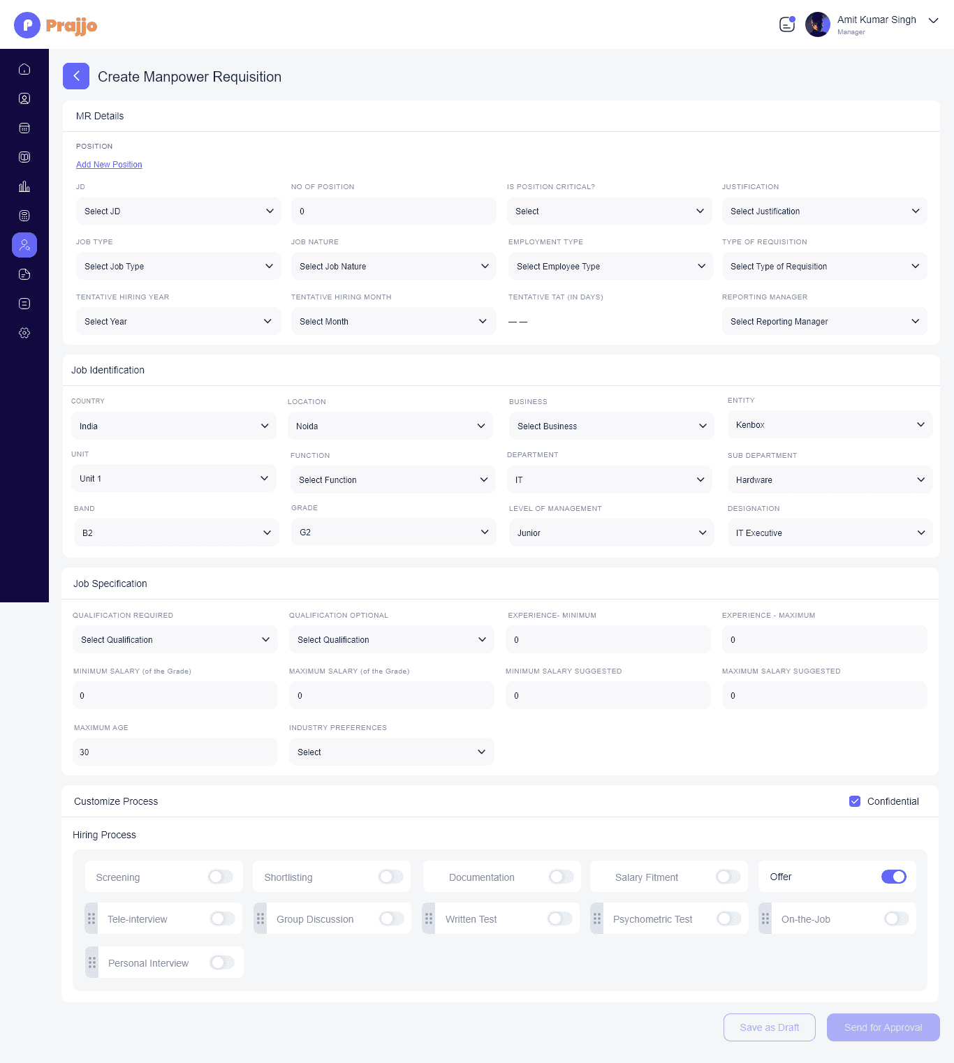 In these process HR Create Manpower Requisition and take approval to all stakeholders via these platform.