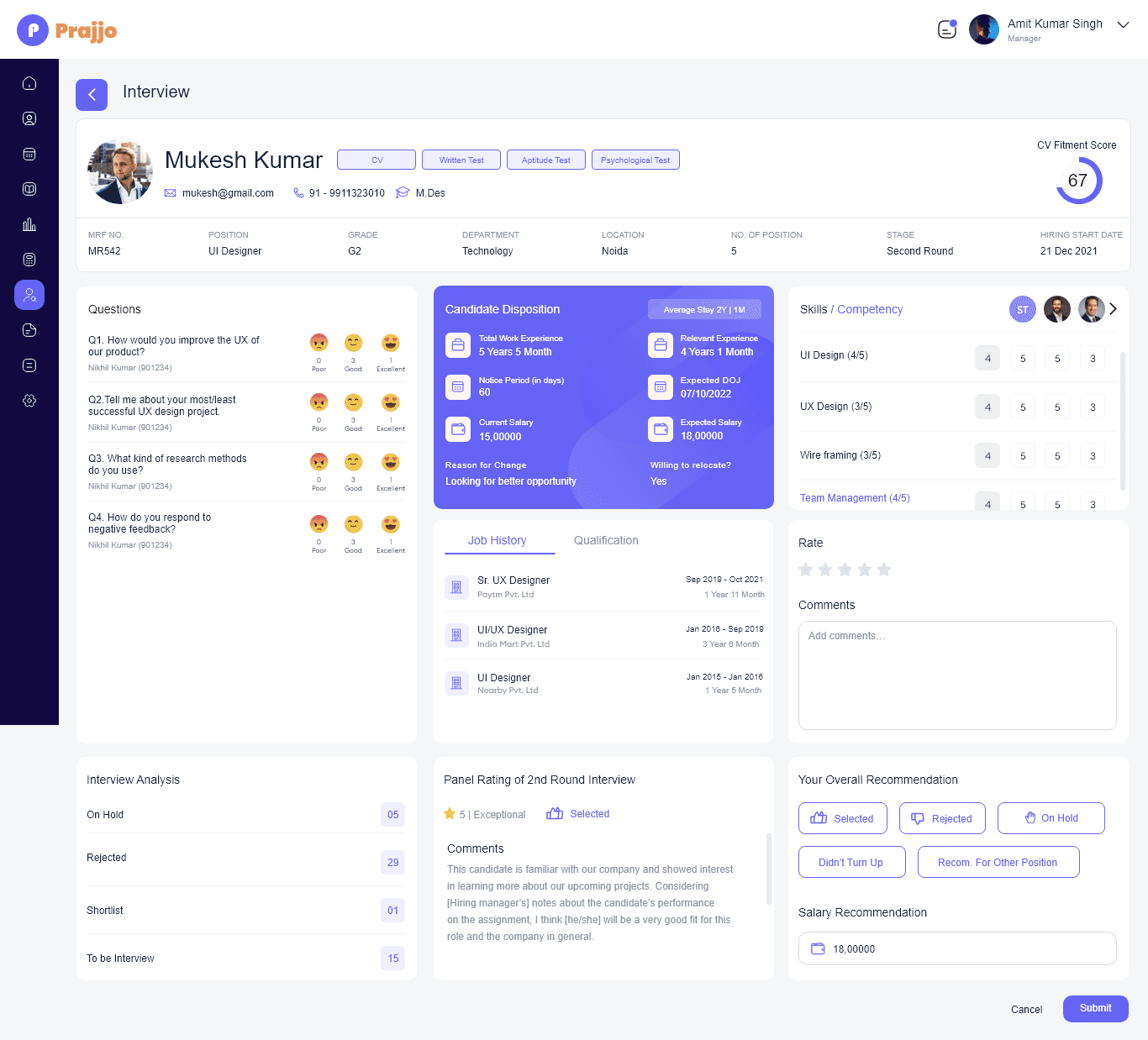 Once a suitable candidate is identified, the module supports the creation, negotiation, and management of job offers, including salary, benefits, and other terms of employment.