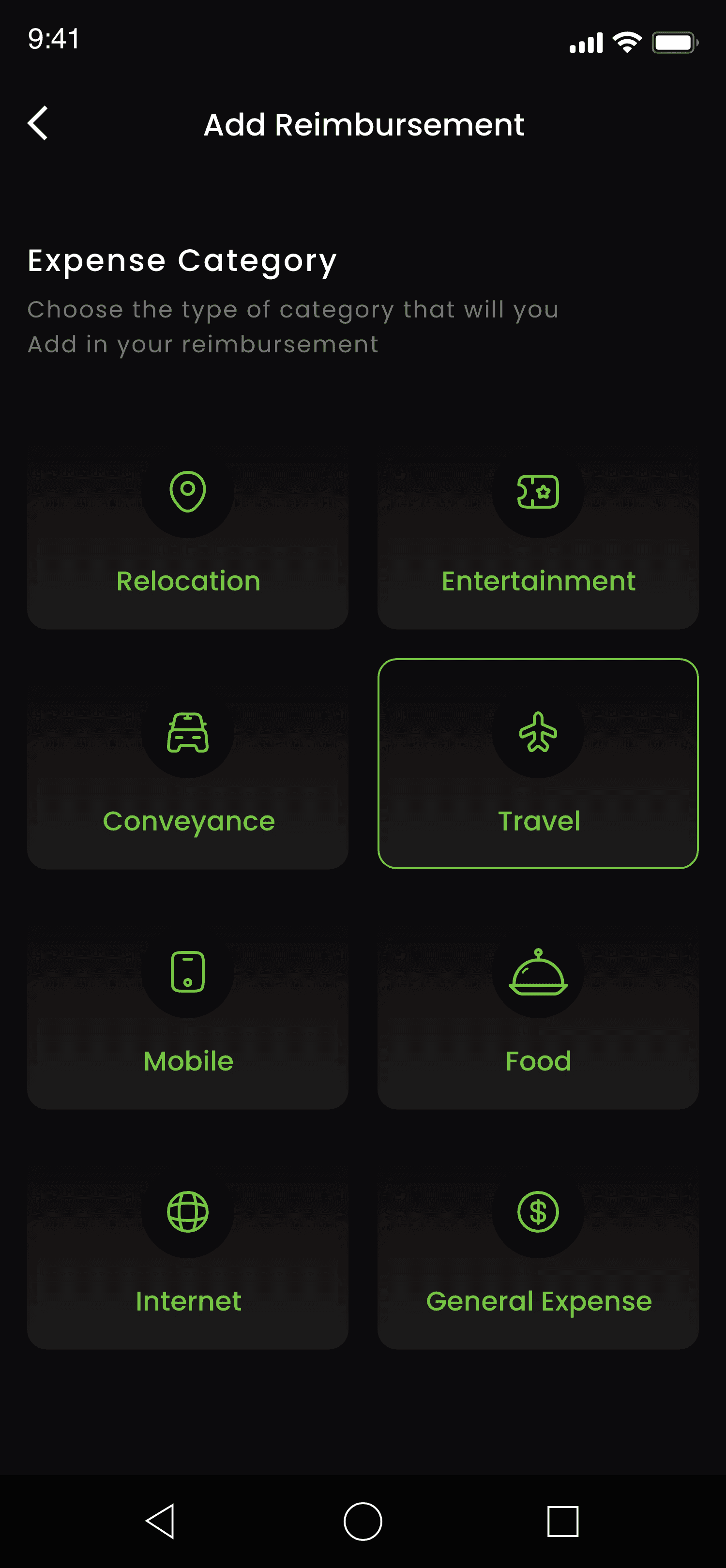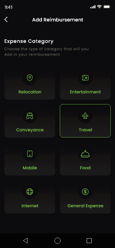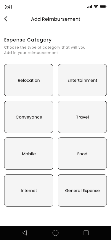 Here, users can choose a category for reimbursement.